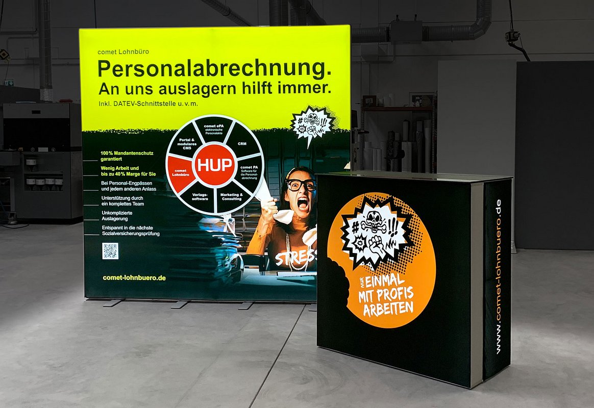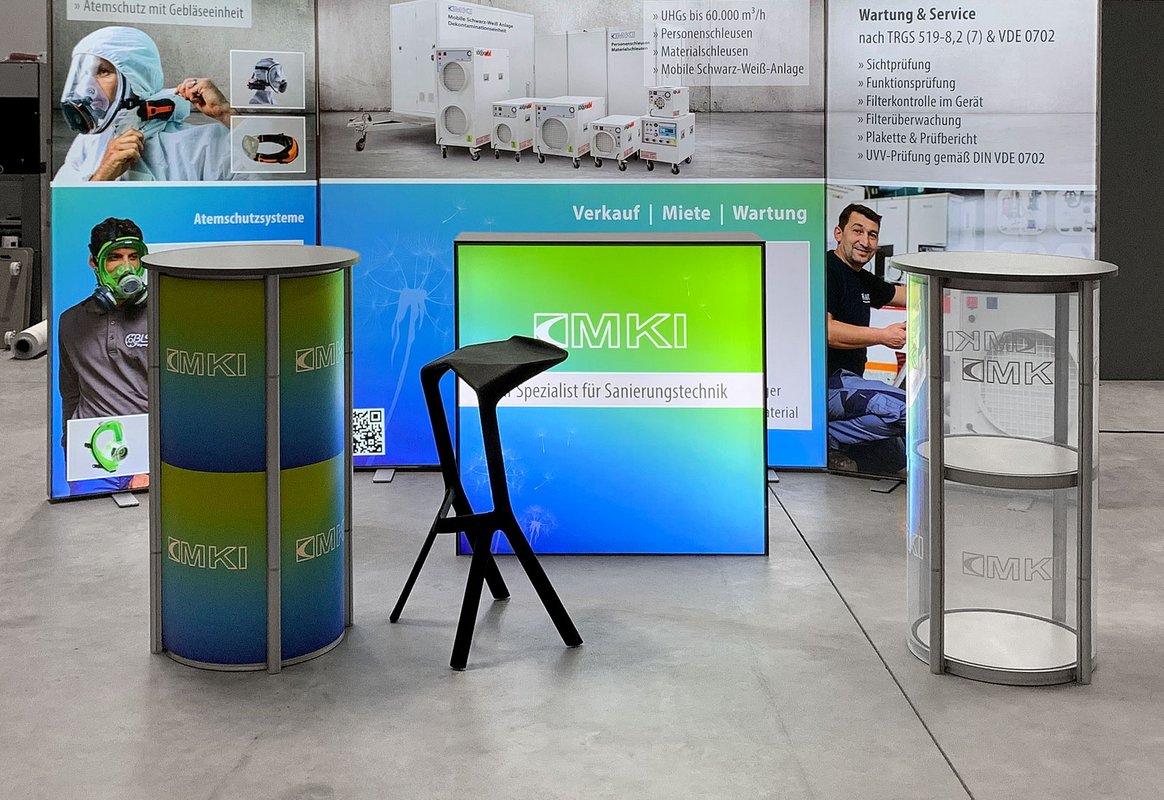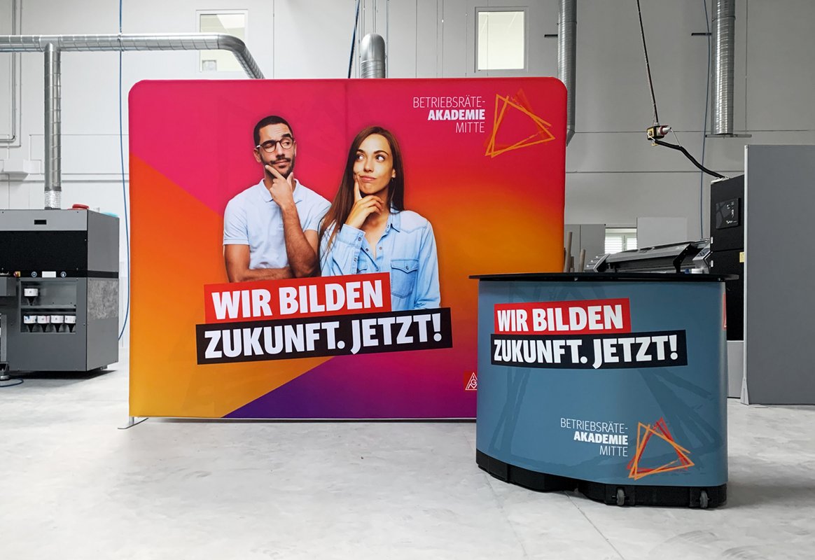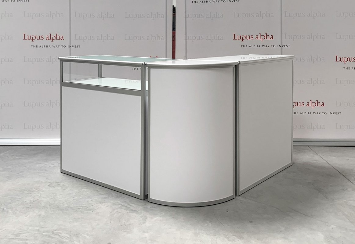 Unsere Messe-Theken haben in zahlreichen Projekten ihre Vielseitigkeit und Qualität unter Beweis gestellt. Ein herausragendes Beispiel ist die Zusammenarbeit mit Fressnapf, einem führenden Anbieter für Tiernahrung. Hier kombinierten wir eine Messewand beleuchtet mit unserer LED Bestseller-Theke ALU STAR PLUS, die durch ihre dynamische Beleuchtung die Aufmerksamkeit der Besucher auf sich zieht. Die abschließbaren Türen, die auf der Rückseite der Theke montiert wurden, sorgten für zusätzliche Sicherheit und Ordnung am Messestand. Die individuell bedruckte Diabespannung der Theke präsentierte eindrucksvoll den Leitsatz des Unternehmens. Der schnelle und werkzeuglose Aufbau unserer Theke erleichterte dem Standpersonal die Vorbereitung und ermöglichte einen stressfreien Start in die Messe. Ein weiteres Projekt war der Messestand des Softwareherstellers Glory Global Solutions. Hier bestand die Herausforderung darin, eine elegante und zugleich funktionale Theke zu liefern, die perfekt zur Marke passte. Die Wahl fiel auf unsere Theke PENTA-LOOOP®, die über einen äußerst flexiblen Aufbaumechanismus verfügt. Dieses besondere Thekenmodell bildet eine optimale Symbiose zu der LED-Messewand ALU LightUp, die im Hintergrund des Messestands positioniert ist. Für Recruiting-Messen haben wir eine maßgeschneiderte Lösung für budgetorientierte Kunden entwickelt, wie das Messestand-Projekt der IG Metall zeigt. Die Kombination aus einer Expand PodiumCase Theke und einer kostengünstigen ZippWall Messewand bietet ausreichend große Präsentationsflächen zum attraktiven Preis in bestechender Qualität.